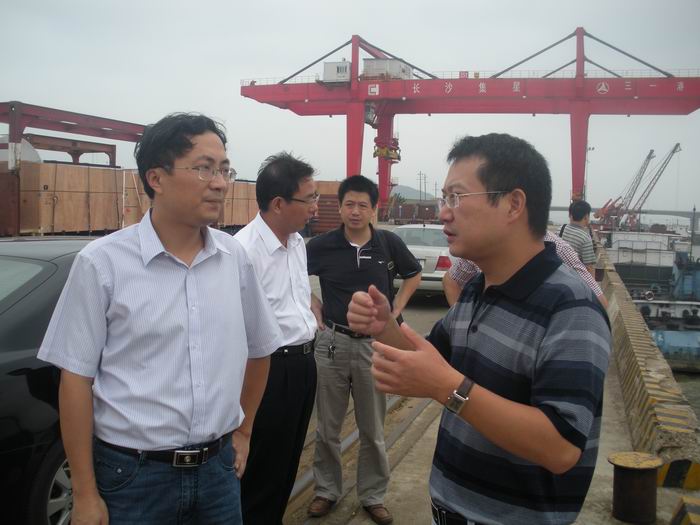 2010年9月8日,湖南省社科院研究員黃海一行在長沙市口岸辦副主任王光輝的陪同下,來長沙新港進行長沙水運口岸建設的調(diào)研。