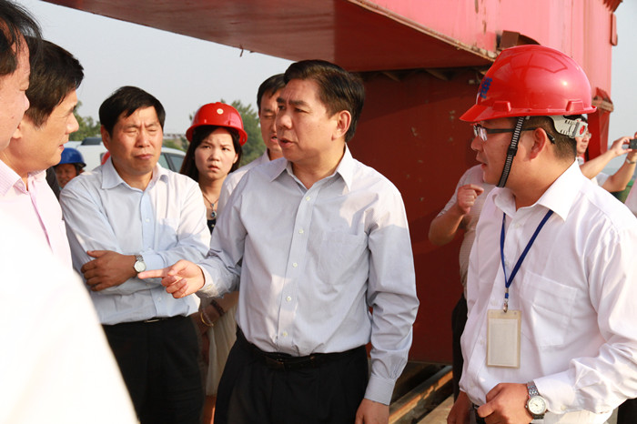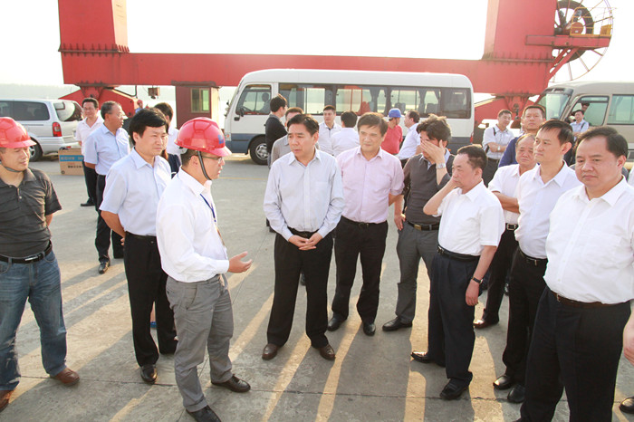 10月14日下午,國(guó)家發(fā)改委副主任徐憲平,交通運(yùn)輸部綜合規(guī)劃司副司長(zhǎng)蘇杰,國(guó)家發(fā)改委基礎(chǔ)產(chǎn)業(yè)司司長(zhǎng)黃民,國(guó)家發(fā)改委規(guī)劃司副司長(zhǎng)袁喜祿等領(lǐng)導(dǎo)一行,在湖南省人民政府副省長(zhǎng)陳肇雄,長(zhǎng)沙市領(lǐng)導(dǎo)余合泉等領(lǐng)導(dǎo)的陪同下就長(zhǎng)江經(jīng)濟(jì)帶建設(shè)來長(zhǎng)沙新港調(diào)研。湖南長(zhǎng)沙新港有限責(zé)任公司董事長(zhǎng)、總經(jīng)理、黨委副書記唐忠良,董事、副總經(jīng)理張韜,董事、長(zhǎng)沙集星集裝箱碼頭有限公司副總經(jīng)理辛華等接待。 在長(zhǎng)沙新港集裝箱碼頭上,集星公司副總經(jīng)理辛華首先向徐憲平副主任一行介紹了長(zhǎng)沙新港一、二期碼頭規(guī)模、貨源、業(yè)務(wù)、運(yùn)營(yíng)等情況,著重介紹了湘江長(zhǎng)沙綜合樞紐試通航初期和長(zhǎng)沙海事為長(zhǎng)沙新港開辟樞紐“綠色通道”后,碼頭業(yè)務(wù)及生產(chǎn)情況對(duì)比。辛華介紹說:“樞紐‘綠色通道’開辟以來,船舶進(jìn)出閘通過艘次提高26.84%;集裝箱吞吐量達(dá)46412標(biāo)箱,比‘綠色通道’開辟之前提高86.28%。”隨后,新港公司副總經(jīng)理張韜向徐憲平副主任一行介紹了三期工程規(guī)劃、建成規(guī)模、建設(shè)進(jìn)展等情況。 徐憲平副主任指出,湖南這些年發(fā)展迅速,強(qiáng)大的水運(yùn)網(wǎng)絡(luò)給予了湖南對(duì)外經(jīng)濟(jì)發(fā)展強(qiáng)大的支持。長(zhǎng)沙新港碼頭地理位置優(yōu)越,硬件設(shè)施完備,足夠滿足碼頭日常生產(chǎn)需求;港口規(guī)劃及管理科學(xué)規(guī)范,集裝箱碼頭管理系統(tǒng)十分先進(jìn);碼頭生產(chǎn)井然有序,一派繁忙景象。徐憲平副主任肯定了長(zhǎng)沙新港這幾年建設(shè)、經(jīng)營(yíng)所取得的成績(jī)并強(qiáng)調(diào),三期建成后,港口功能將更加完善,有望成為國(guó)內(nèi)一流的現(xiàn)代化內(nèi)河港口,長(zhǎng)沙新港前景可觀。 |