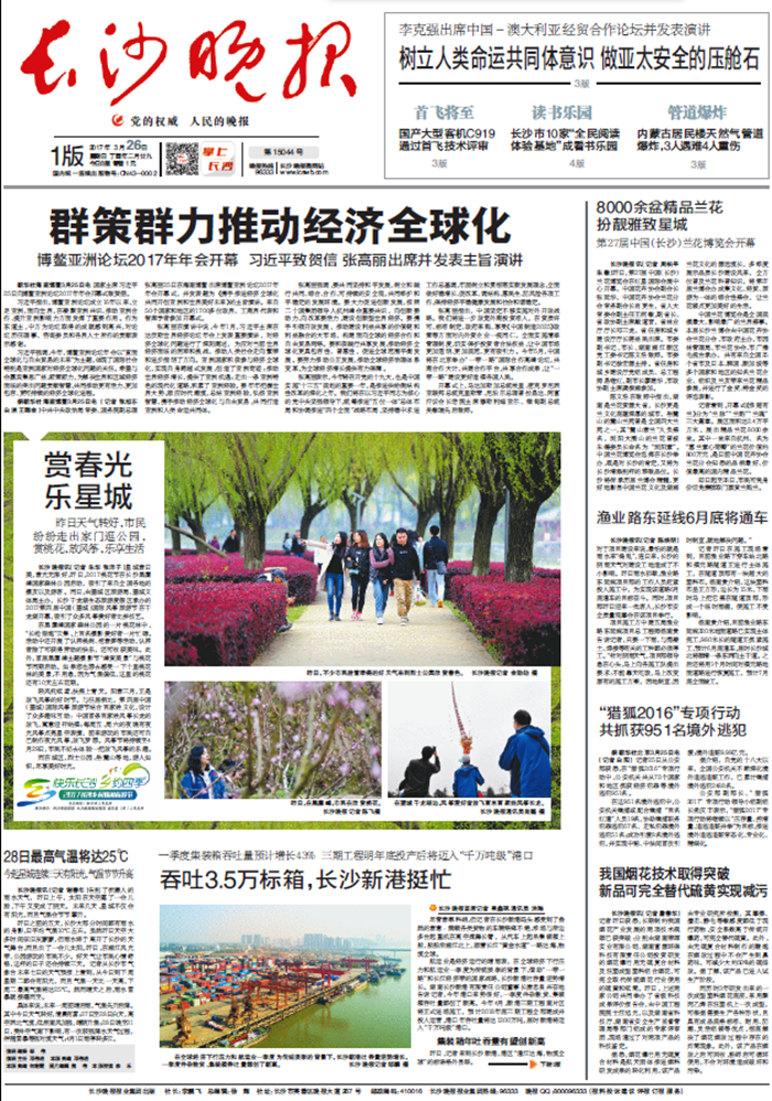 長沙市第十三次黨代會上,省委常委、市委書記易煉紅提出長沙將建設(shè)全國中心城市,全力打造“三個中心”,長沙新港作為水運交通樞紐,對于我市打造國家交通物流中心意義重大,港口經(jīng)濟不斷升溫。今年一季度,港口生產(chǎn)形勢步步看漲,生產(chǎn)數(shù)據(jù)屢屢刷新。一季度共完成港口吞吐量166.5萬噸,其中集裝箱吞吐3.65萬標(biāo)箱,較去年同期相比增長44%,件雜散貨吞吐93.5萬噸,較去年同期相比增長60%。 眾所周知,航運業(yè)是經(jīng)濟運行的晴雨表,在全球經(jīng)濟下行壓力和航運業(yè)一季度內(nèi)傳統(tǒng)淡季的背景下,借助“一帶一路”和長江經(jīng)濟帶的國家戰(zhàn)略,長沙新港一季度強勢“亮相”,吞吐量逆勢增長,給全市的經(jīng)濟指標(biāo)注入了一股亮眼色彩,各大媒體爭相報道。3月下旬,《長沙晚報》、《湖南日報》、湖南衛(wèi)視、湖南經(jīng)視、紅網(wǎng)等主流媒體相繼到港采訪,湖南長沙新港有限責(zé)任公司董事長、總經(jīng)理唐忠良接受采訪。 “今年港口來勢很好,一季度,港口件雜散貨、集裝箱吞吐量雙雙創(chuàng)了新高。件雜散貨一季度吐吞量93.5萬噸,同比增長60%;集裝箱吞吐3.65萬標(biāo)箱,同比增長44%。其中,港口集裝箱貨物以外貿(mào)為主,主要通過上海港運至世界各地,一季度集裝箱量的迅猛增長,反映出港口物流對外向型經(jīng)濟發(fā)展的重要助推作用。”唐總興奮地向記者介紹道。 據(jù)統(tǒng)計,2016年長沙新港共完成貨物吞吐量614萬噸,同比增長12.4%,創(chuàng)歷史新高。根據(jù)今年港口貨運吞吐量的強勁增長勢頭,今年有望再創(chuàng)歷史新高,特別是港口集裝箱,計劃突破14萬標(biāo)箱,有望達(dá)到15萬標(biāo)箱,創(chuàng)歷史新高。 港口生產(chǎn)熱火朝天,三期建設(shè)馬不停蹄。唐總介紹道:“今年4月,新港三期工程南片區(qū)將正式進場施工,預(yù)計2018年底三期工程全部建成并投入運營,預(yù)計2018年,長沙港霞凝港區(qū)三期工程將竣工投產(chǎn)。”屆時,長沙新港年吞吐量將達(dá)到1200萬噸,邁入千萬噸級港口行列。長沙港將實現(xiàn)集進出口集裝箱、大宗件雜貨、滾裝、散貨裝卸運輸于一體,“水鐵”無縫對接的現(xiàn)代化“黃金港口”,成為我市打造“交通物流中心”不可或缺的物流公共平臺。 3月25日,湖南經(jīng)視“經(jīng)視觀察”欄目播出新聞專題節(jié)目《打通這一公里 企業(yè)可省千萬元》,重點報道長沙新港“鐵水聯(lián)運”項目;3月26日《長沙晚報》A01版、28日《湖南日報》頭版分別以《吞吐3.5萬噸標(biāo)箱,長沙新港挺忙》和《長沙新港好繁忙》為題,進行大篇幅圖文報道,《掌上長沙》、《新湖南》客戶端分別對新聞進行了轉(zhuǎn)載。長沙新港在各大主流媒體頻繁“刷臉”,再一次成為社會關(guān)注的焦點。 |