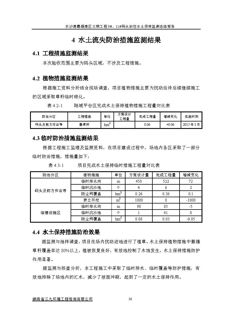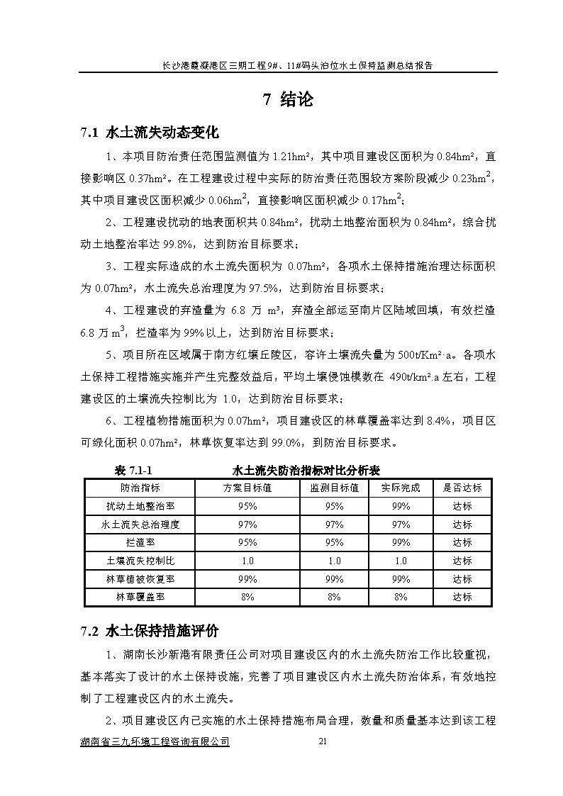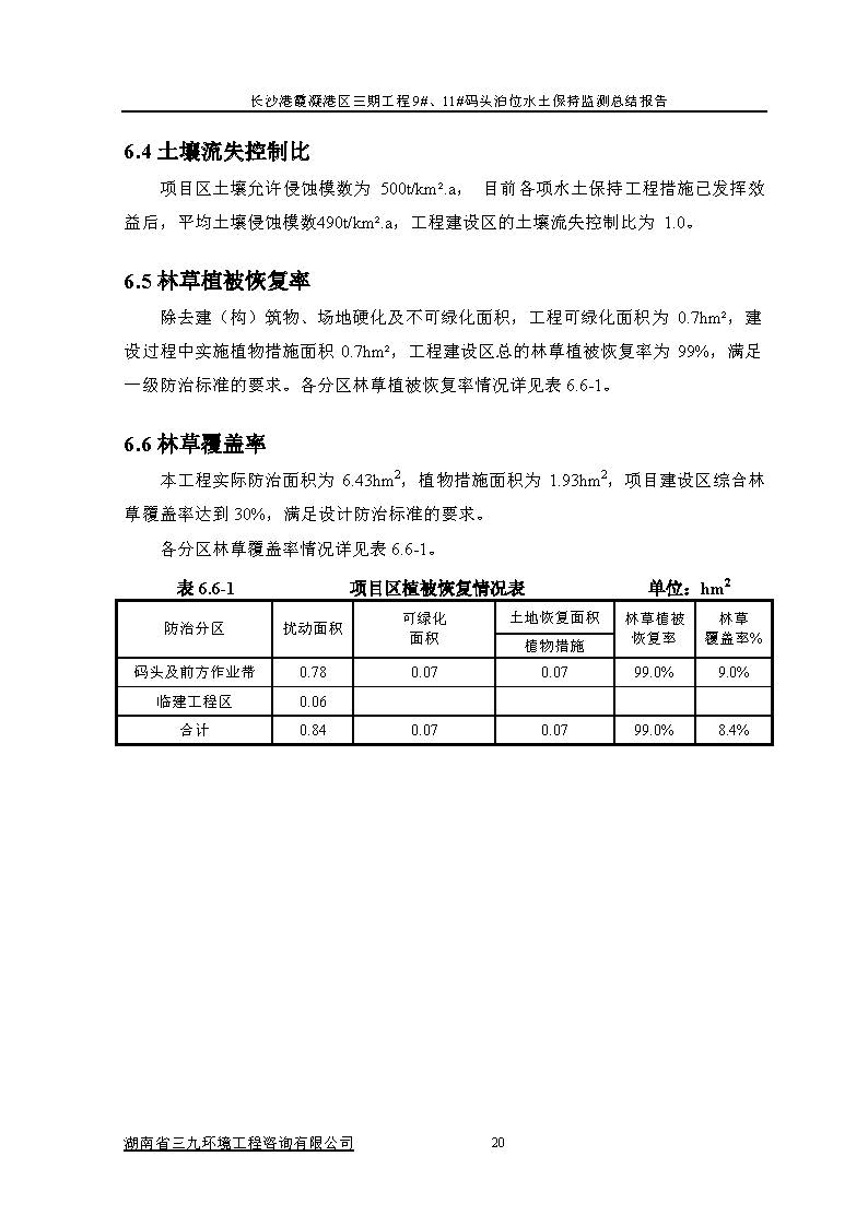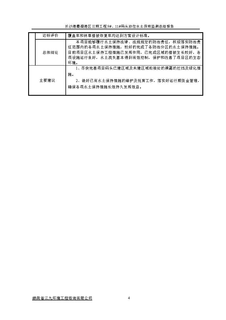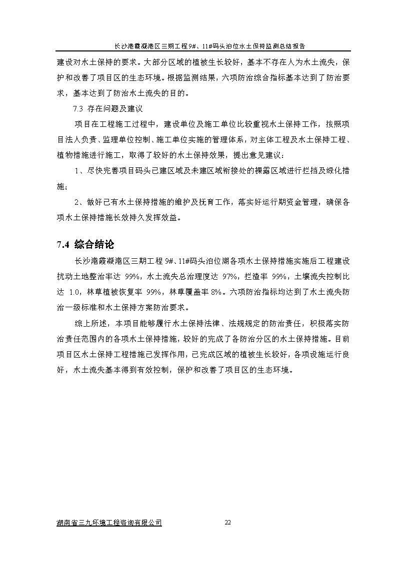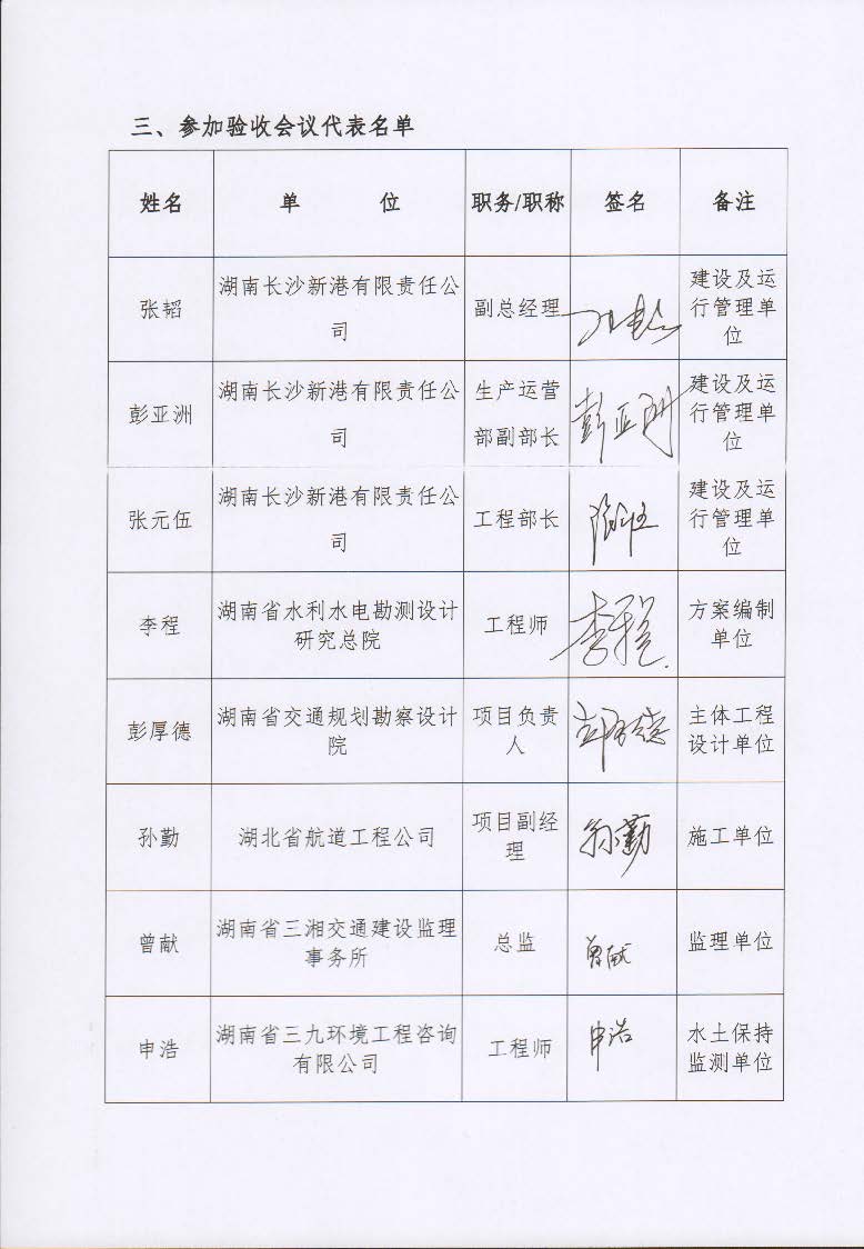 根據(jù)水利部關(guān)于加強(qiáng)事中事后監(jiān)管規(guī)范生產(chǎn)建設(shè)項(xiàng)目水土保持設(shè)施自主驗(yàn)收的通知(水保(2017) 365號(hào))、《湖南省水利廳關(guān)于下放部分生產(chǎn)建設(shè)項(xiàng)目水土保持方案審批權(quán)限的通知》(湘水辦[2017]116號(hào))和《長沙市水務(wù)局關(guān)于簡化生產(chǎn)建設(shè)項(xiàng)目水土保持方案及水土保持設(shè)施驗(yàn)收有關(guān)事項(xiàng)的通知》(長水發(fā)〔2017〕27號(hào))規(guī)定,2018年7月3日,湖南長沙新港有限責(zé)任公司主持召開了長沙港霞凝港區(qū)三期工程9#、11#碼頭泊位水土保持設(shè)施驗(yàn)收會(huì)議,會(huì)議成立了驗(yàn)收組。 通過深入工程現(xiàn)場(chǎng)核查,并查閱相關(guān)檔案資料,驗(yàn)收小組認(rèn)為本工程積極落實(shí)了各施工區(qū)域的水土流失防治工作,水土保持設(shè)施質(zhì)量總體合格,水土流失防治指標(biāo)達(dá)到了水土保持方案確定的目標(biāo)值,符合水土保持設(shè)施竣工驗(yàn)收的條件。驗(yàn)收組一致同意長沙港霞凝港區(qū)三期工程9#、11#碼頭泊位水土保持設(shè)施通過驗(yàn)收。經(jīng)驗(yàn)收組與會(huì)議審議,形成了《長沙港霞凝港區(qū)三期工程9#、11#碼頭泊位水土保持設(shè)施自查驗(yàn)收鑒定書》。