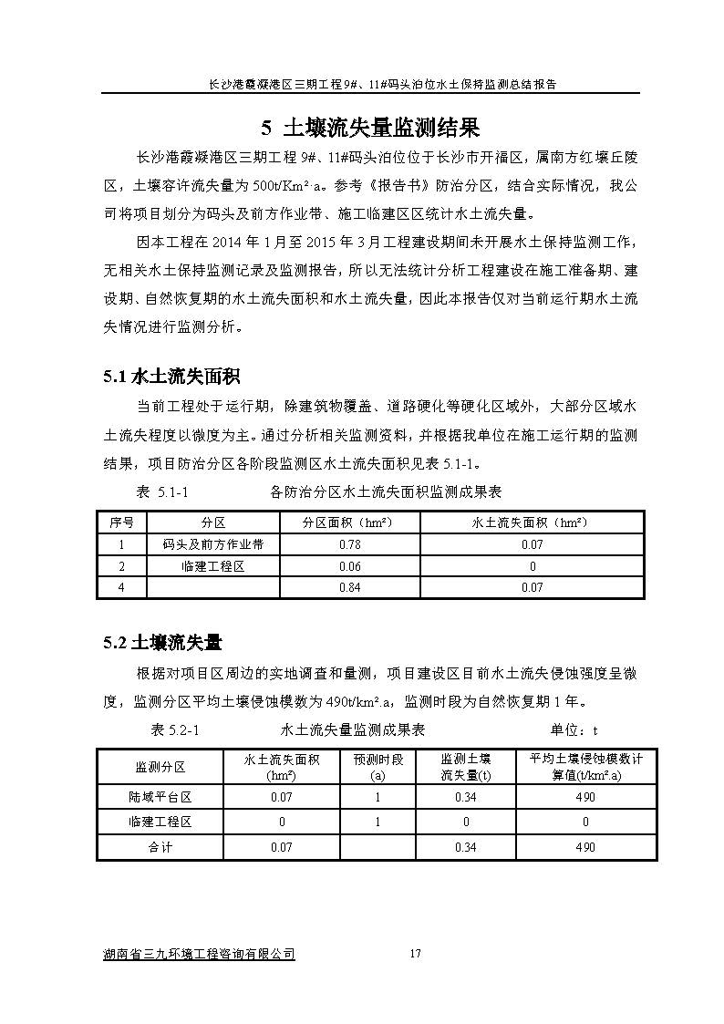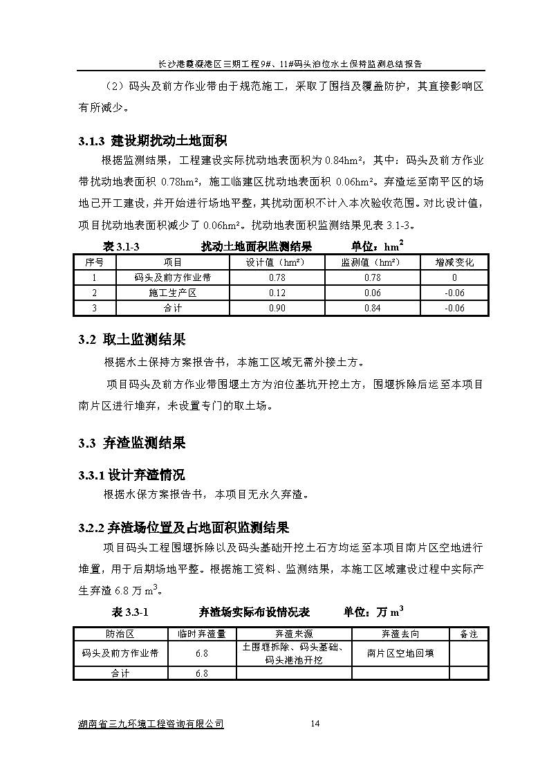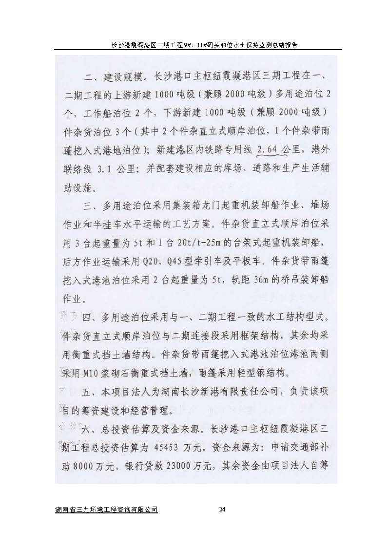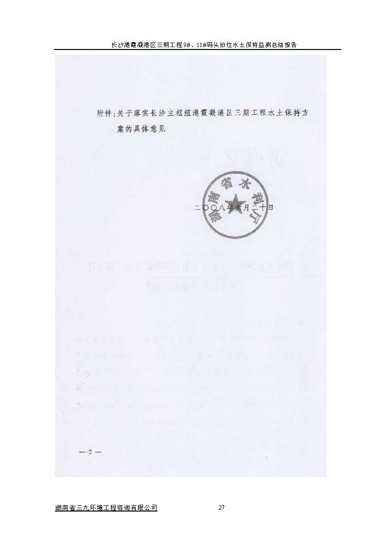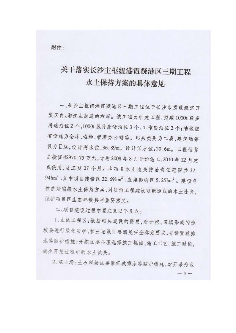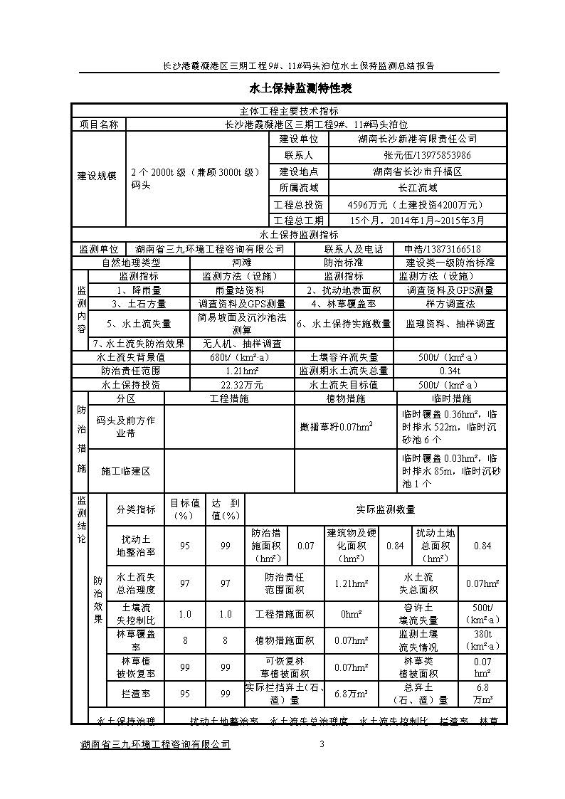 根據(jù)水利部關(guān)于加強(qiáng)事中事后監(jiān)管規(guī)范生產(chǎn)建設(shè)項(xiàng)目水土保持設(shè)施自主驗(yàn)收的通知(水保(2017) 365號(hào))、《湖南省水利廳關(guān)于下放部分生產(chǎn)建設(shè)項(xiàng)目水土保持方案審批權(quán)限的通知》(湘水辦[2017]116號(hào))和《長沙市水務(wù)局關(guān)于簡化生產(chǎn)建設(shè)項(xiàng)目水土保持方案及水土保持設(shè)施驗(yàn)收有關(guān)事項(xiàng)的通知》(長水發(fā)〔2017〕27號(hào))規(guī)定,2018年7月3日,湖南長沙新港有限責(zé)任公司主持召開了長沙港霞凝港區(qū)三期工程9#、11#碼頭泊位水土保持設(shè)施驗(yàn)收會(huì)議,會(huì)議成立了驗(yàn)收組。 通過深入工程現(xiàn)場(chǎng)核查,并查閱相關(guān)檔案資料,驗(yàn)收小組認(rèn)為本工程積極落實(shí)了各施工區(qū)域的水土流失防治工作,水土保持設(shè)施質(zhì)量總體合格,水土流失防治指標(biāo)達(dá)到了水土保持方案確定的目標(biāo)值,符合水土保持設(shè)施竣工驗(yàn)收的條件。驗(yàn)收組一致同意長沙港霞凝港區(qū)三期工程9#、11#碼頭泊位水土保持設(shè)施通過驗(yàn)收。經(jīng)驗(yàn)收組與會(huì)議審議,形成了《長沙港霞凝港區(qū)三期工程9#、11#碼頭泊位水土保持設(shè)施自查驗(yàn)收鑒定書》。