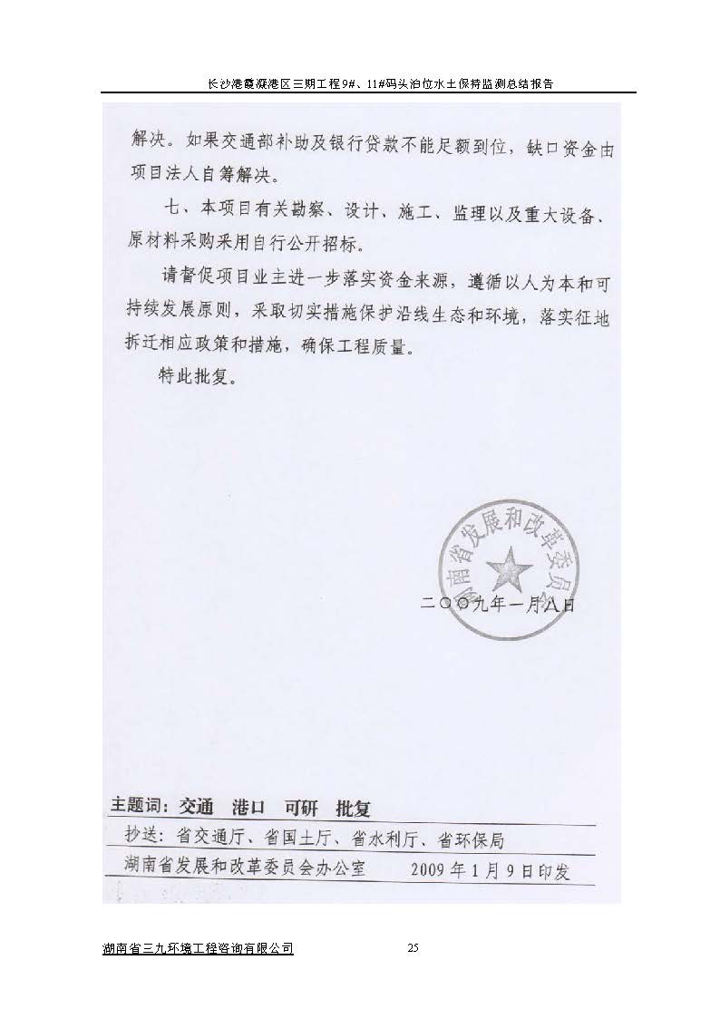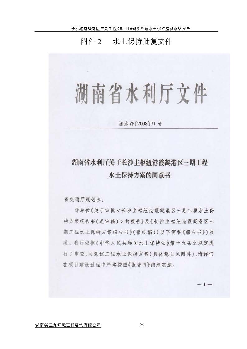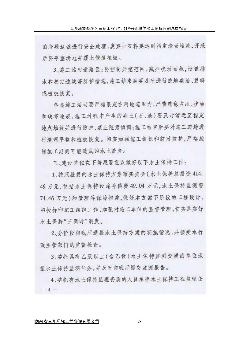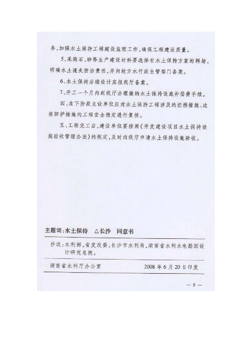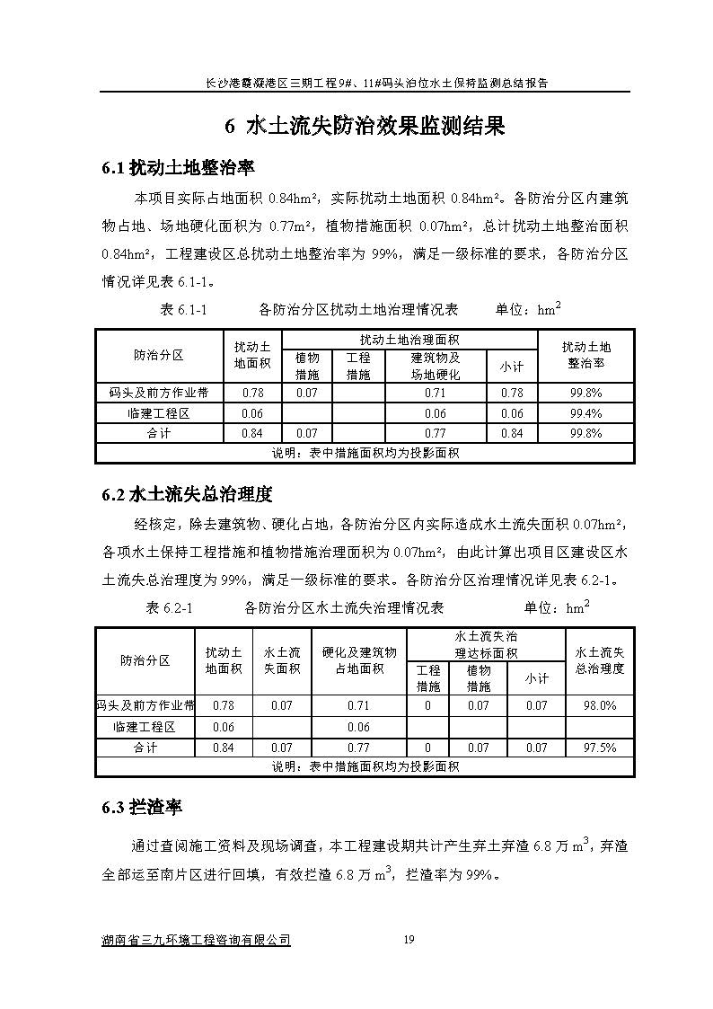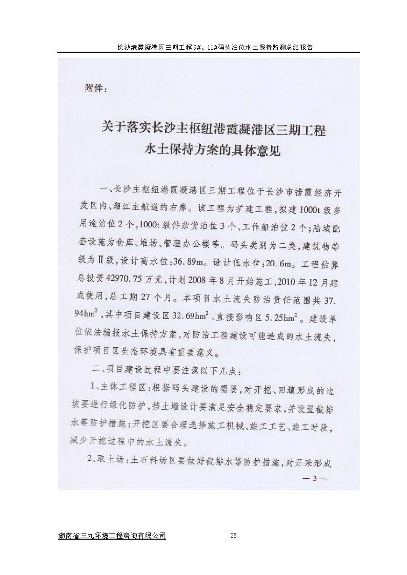 根據(jù)水利部關(guān)于加強(qiáng)事中事后監(jiān)管規(guī)范生產(chǎn)建設(shè)項(xiàng)目水土保持設(shè)施自主驗(yàn)收的通知(水保(2017) 365號(hào))、《湖南省水利廳關(guān)于下放部分生產(chǎn)建設(shè)項(xiàng)目水土保持方案審批權(quán)限的通知》(湘水辦[2017]116號(hào))和《長沙市水務(wù)局關(guān)于簡化生產(chǎn)建設(shè)項(xiàng)目水土保持方案及水土保持設(shè)施驗(yàn)收有關(guān)事項(xiàng)的通知》(長水發(fā)〔2017〕27號(hào))規(guī)定,2018年7月3日,湖南長沙新港有限責(zé)任公司主持召開了長沙港霞凝港區(qū)三期工程9#、11#碼頭泊位水土保持設(shè)施驗(yàn)收會(huì)議,會(huì)議成立了驗(yàn)收組。 通過深入工程現(xiàn)場(chǎng)核查,并查閱相關(guān)檔案資料,驗(yàn)收小組認(rèn)為本工程積極落實(shí)了各施工區(qū)域的水土流失防治工作,水土保持設(shè)施質(zhì)量總體合格,水土流失防治指標(biāo)達(dá)到了水土保持方案確定的目標(biāo)值,符合水土保持設(shè)施竣工驗(yàn)收的條件。驗(yàn)收組一致同意長沙港霞凝港區(qū)三期工程9#、11#碼頭泊位水土保持設(shè)施通過驗(yàn)收。經(jīng)驗(yàn)收組與會(huì)議審議,形成了《長沙港霞凝港區(qū)三期工程9#、11#碼頭泊位水土保持設(shè)施自查驗(yàn)收鑒定書》。