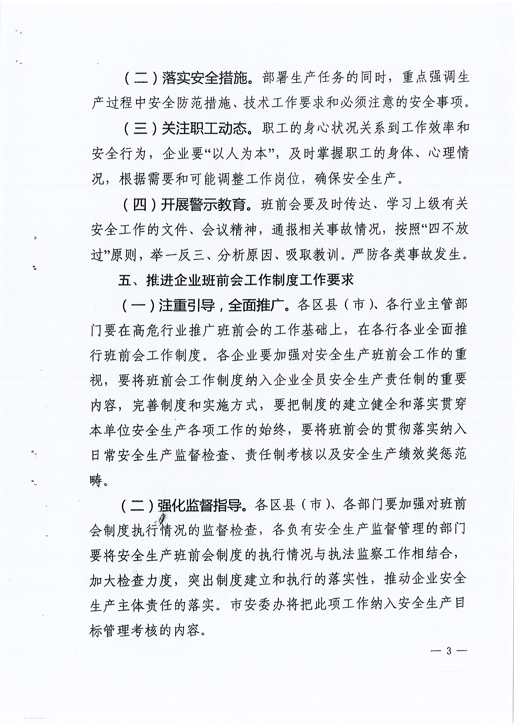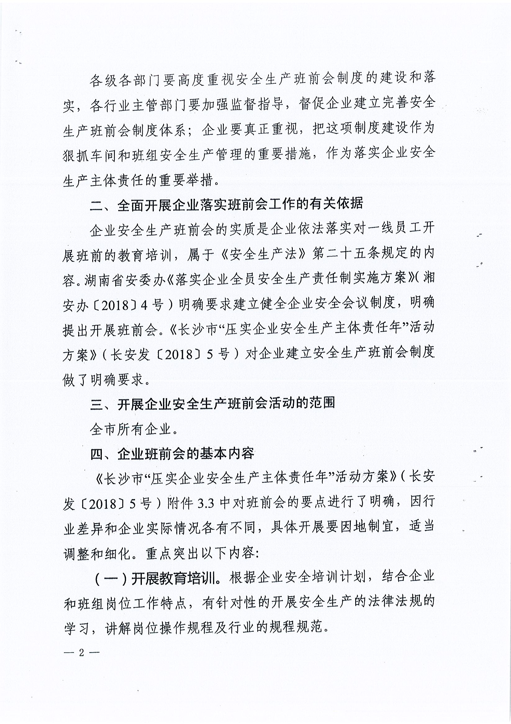 長沙市安全生產(chǎn)委員會辦公室關(guān)于在全市企業(yè)推進班前會工作制度的通知