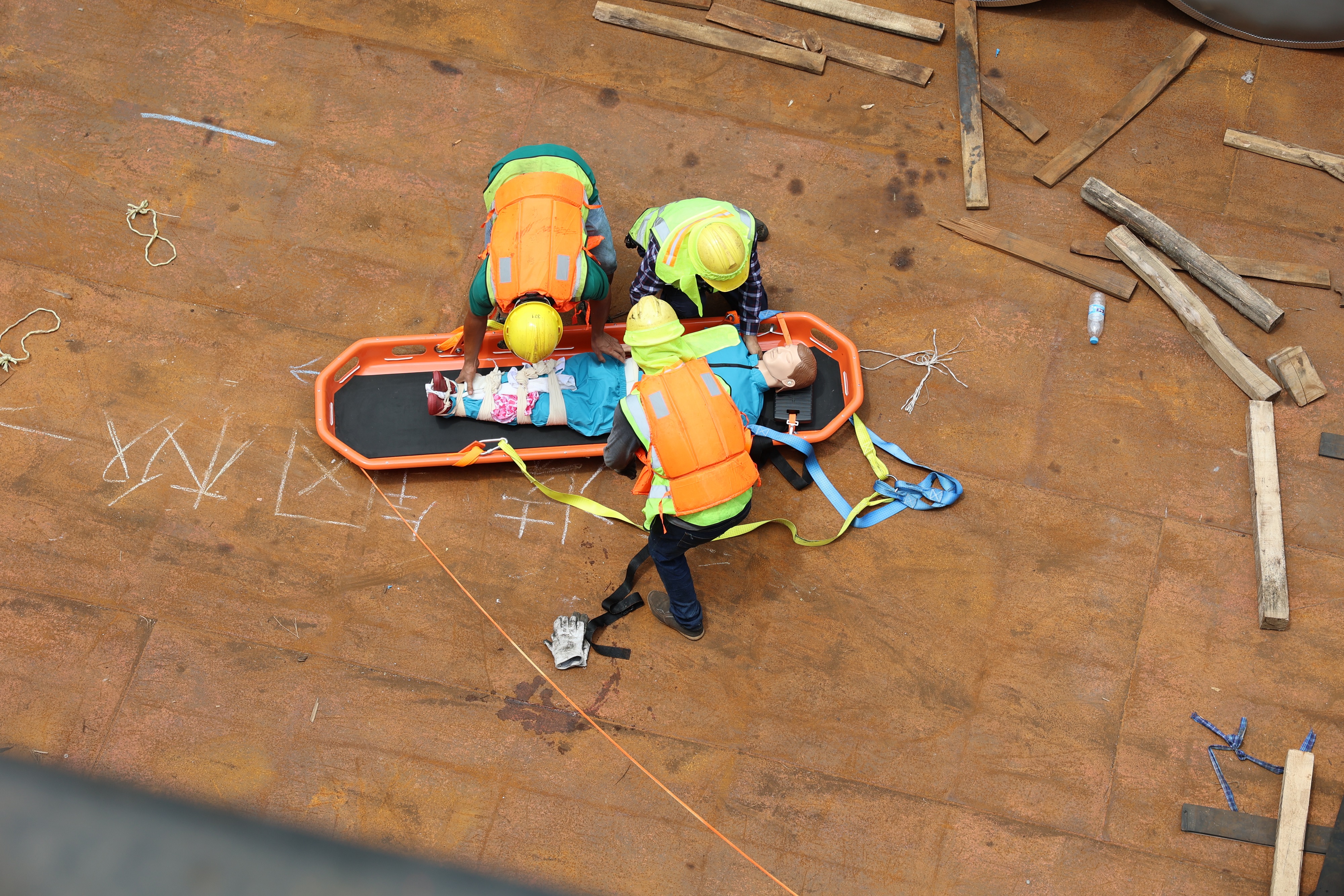 長沙新港開展生產(chǎn)安全事故應(yīng)急救援演練 6月29日上午10時,湖南長沙新港有限責(zé)任公司在南片區(qū)碼頭開展了生產(chǎn)安全事故應(yīng)急救援演練,模擬冷軋卷鋼在下河作業(yè)過程中發(fā)生吊帶斷裂,造成人員受傷和貨物受損的安全事故。公司黨委副書記、總經(jīng)理辛華任演練總指揮,副總經(jīng)理張韜任演練副總指揮,副總經(jīng)理周明德任演練現(xiàn)場總指揮,同時參演的還有各部室負(fù)責(zé)人、各應(yīng)急救援小組成員、生產(chǎn)作業(yè)班組,并邀請了藍(lán)天救援隊的專業(yè)老師進行心肺復(fù)蘇、骨折包扎、傷員搬運等現(xiàn)場教學(xué)。整個演練過程按應(yīng)急救援預(yù)案展開,應(yīng)急處置組、現(xiàn)場警戒組、設(shè)備保障組、醫(yī)療善后組、信息后勤組5個救援小組分工明確,妥善應(yīng)對,圓滿地完成了此次演練。演練結(jié)束后,公司領(lǐng)導(dǎo)進行了點評,通過這次演練檢驗了應(yīng)急響應(yīng)人員對應(yīng)急預(yù)案、執(zhí)行程序的了解程度和實際操作技能,明確了各自的崗位與職責(zé),提高了全員的安全意識。在實際工作中,大家要更重視生產(chǎn)一線的現(xiàn)場監(jiān)督、管控,注重生命安全,堅持以人為本、生命至上的原則,確保安全生產(chǎn)。    (本文圖片為模擬現(xiàn)場,為仿真人物道具) |