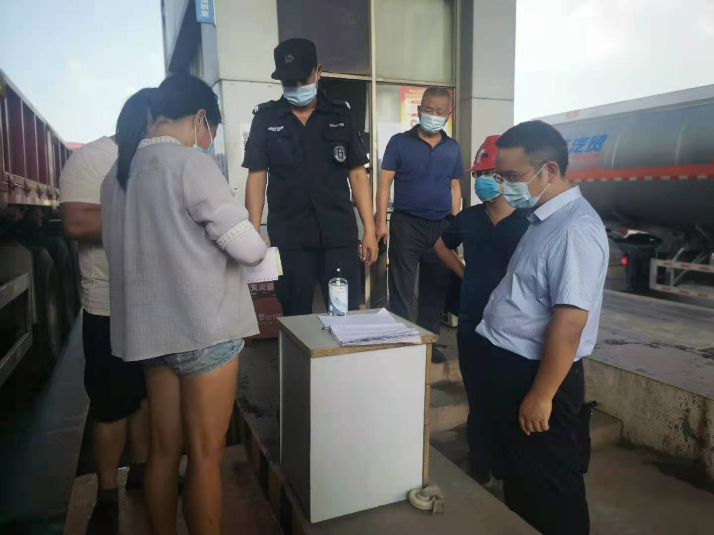 劉俊武督導(dǎo)檢查新港疫情防控工作 8月2日下午,長(zhǎng)沙交通集團(tuán)黨委副書(shū)記、董事、總經(jīng)理劉俊武一行到湖南長(zhǎng)沙新港有限責(zé)任公司檢查指導(dǎo)碼頭安全生產(chǎn)和疫情防控工作。集團(tuán)黨委委員、副總經(jīng)理龍伏波,集團(tuán)辦公室主任李明華及新港公司主要負(fù)責(zé)人陪同督導(dǎo)檢查疫情防控工作。 劉俊武先到碼頭閘口處檢查疫情防控措施落實(shí)情況,對(duì)于碼頭進(jìn)出疫情防控措施的落實(shí)細(xì)節(jié)進(jìn)行檢查,翻閱了消毒記錄本及過(guò)往司機(jī)綠碼登記情況。  他現(xiàn)場(chǎng)了解聽(tīng)取了碼頭安全環(huán)保作業(yè)措施,以及疫情期間船舶管控情況,新港公司黨委書(shū)記、董事長(zhǎng)唐忠良匯報(bào)公司疫情防控工作:公司7月29日召開(kāi)防疫工作專(zhuān)題黨委會(huì),采取查健康碼、行程碼、量體溫、登記、線上報(bào)港等措施,截?cái)鄰乃、路上疫情傳播的通道,加?qiáng)落實(shí)現(xiàn)場(chǎng)消毒和人員排查工作,并為作業(yè)人員配備口罩、手套、護(hù)目鏡等必要的防護(hù)用品。同時(shí)安排采購(gòu)體溫測(cè)量?jī)x,對(duì)中風(fēng)險(xiǎn)崗位進(jìn)行核酸檢測(cè),要求員工進(jìn)一步加大疫苗普及率,打好港口疫情保衛(wèi)戰(zhàn)。針對(duì)高溫天氣作業(yè),公司做好了防暑降溫措施,各單位、各部門(mén)不斷增強(qiáng)安全生產(chǎn)、工程建設(shè)、疫情防控責(zé)任意識(shí),筑牢疫情防控保護(hù)墻,為客戶(hù)提供安全穩(wěn)定的生產(chǎn)環(huán)境。