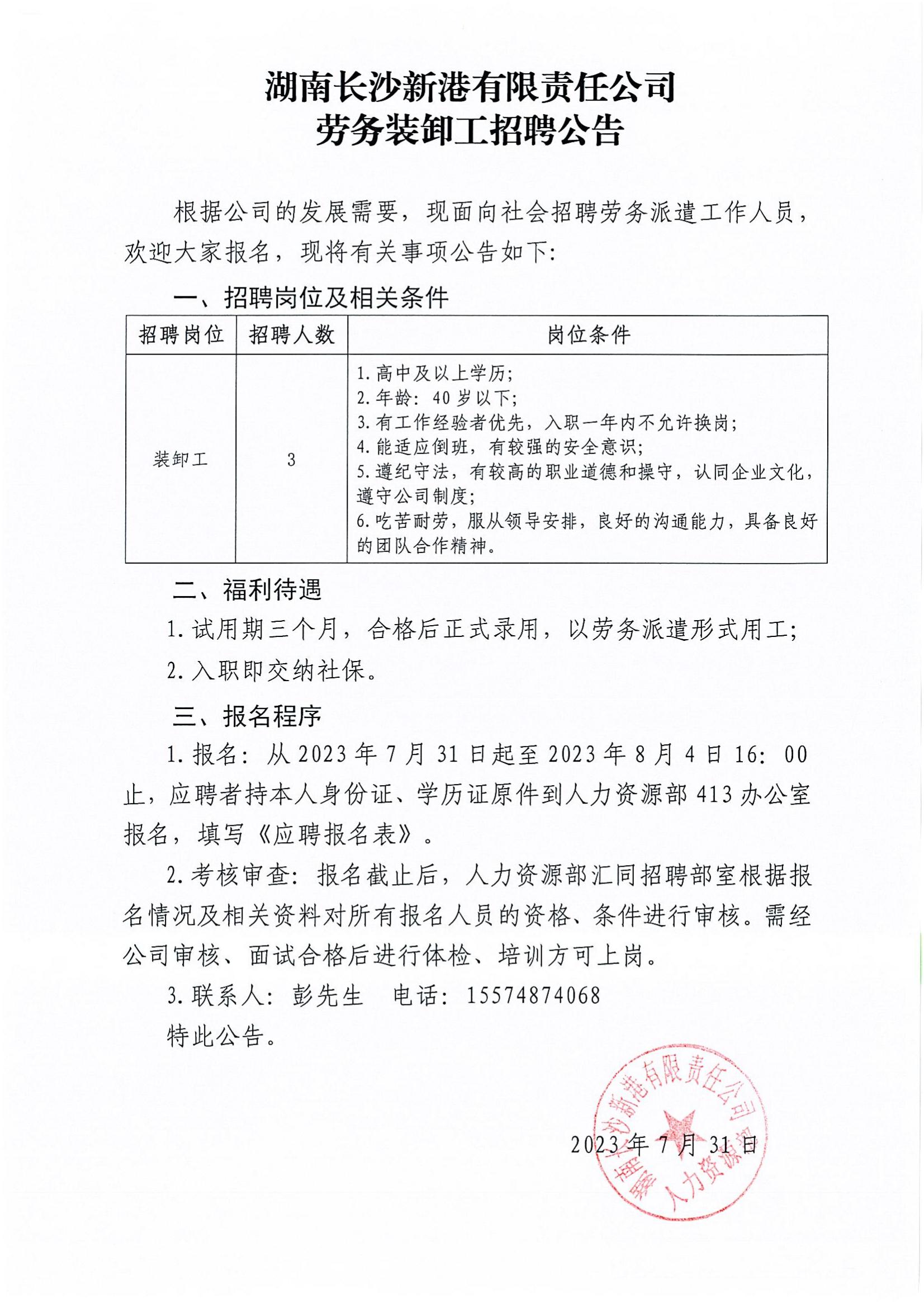 勞務(wù)裝卸工招聘公告