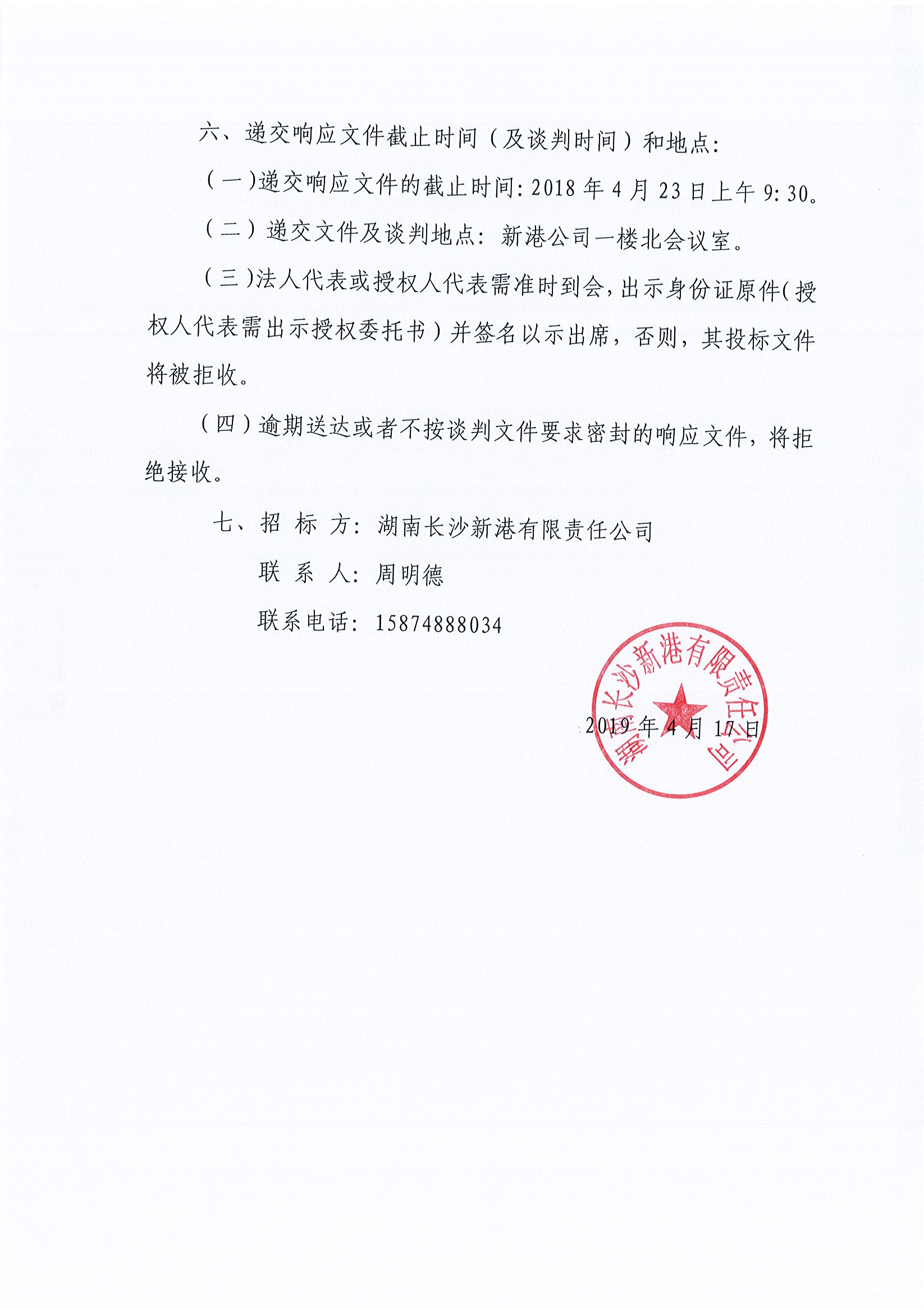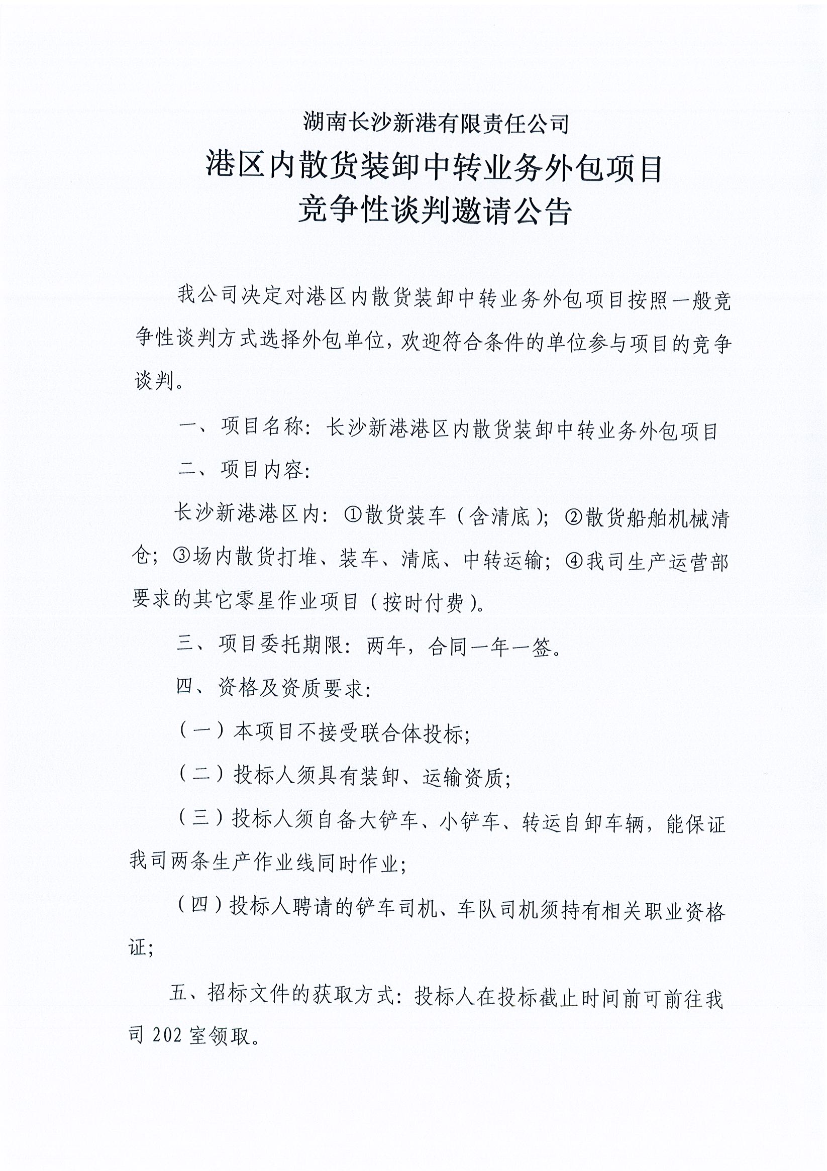 湖南長沙新港有限責任公司港區(qū)內(nèi)散貨裝卸中轉(zhuǎn)業(yè)務外包項目競爭性談判邀請公告